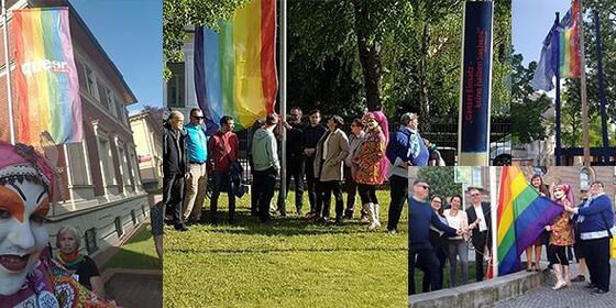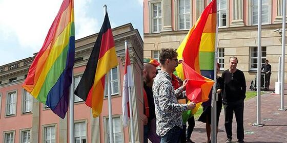 Vor dem Regine-Hildebrandt-Haus, am Karl-Liebknecht-Stadion, vor dem Lothar-Bisky-Haus und am Stadthaus Potsdam wurden am 3. Mai 2018 Regenbogenflaggen anlässlich der Eröffnung des diesjährigen Christopher-Street-Days gehisst.